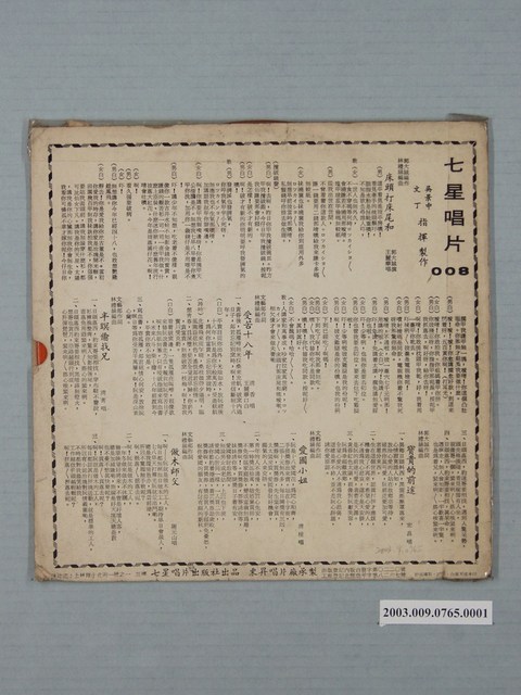 七星唱片出品編號「SS-008」臺語歌曲專輯《最新閩南與轟動歌曲第八集:王寶釧受苦十八年》唱片封套