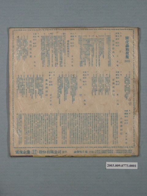 2003.009.0773 雷虎唱片公司出品編號「RF-305」臺語歌曲專輯《雷虎轟動歌集:電影天下一大笑》