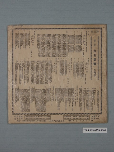 2003.009.0776.0001 鈴鈴唱片公司出品編號「FL-1079」臺語電影《台北街頭主題歌》唱片封套