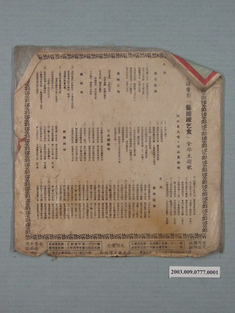 33轉、10吋、臺語流行歌、臺語電影、乞丐與藝妲、乞食開藝旦、陳秋霖、張淑美