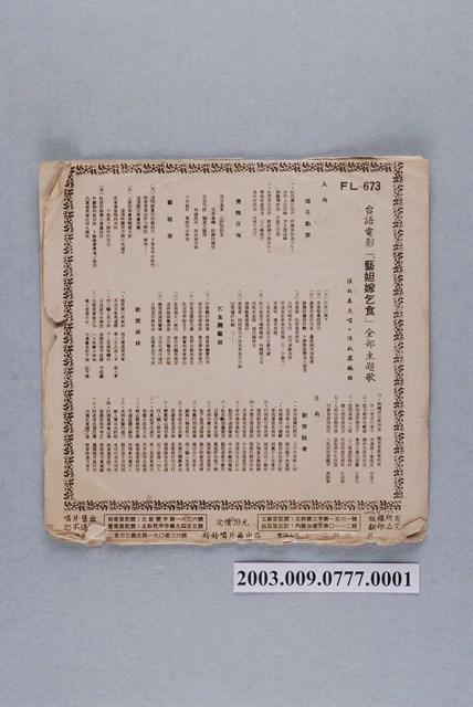 鈴鈴唱片公司出品編號「FL-673」電影唱片專輯《芸妲嫁乞丐主題歌》