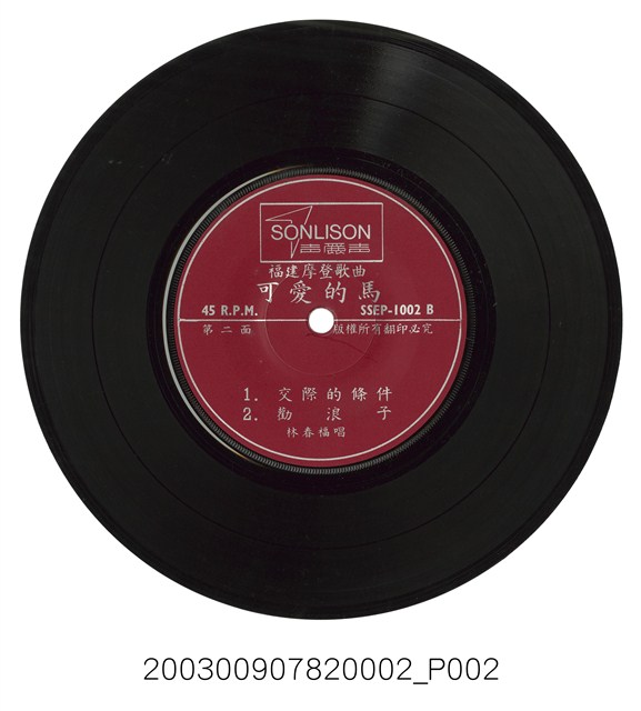 2003.009.0782.0002 聲麗聲唱片公司出品編號「SSEP-1002」歌曲專輯《可愛的馬》7吋塑膠唱片