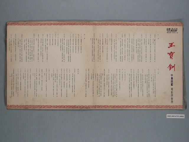 封套正面為女主角王復蓉扮演王寶釧彩圖,附註許多電影宣傳詞,包括「東影企業有限公司出品、伊士曼彩色、新藝綜合體古裝巨片」等,背面附上〈母女會〉、〈血書〉、〈大登殿〉三首歌曲的簡譜與歌詞,是當時黃梅調電影唱片中特別之處。另登出美黛、紫薇、張琪、雪華四位歌手照片。