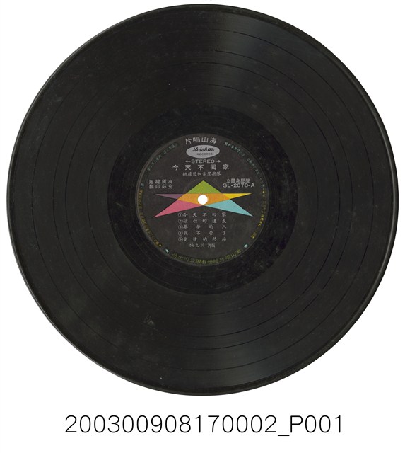 2003.009.0817.0002 海山唱片公司出品編號「SL-2078」國語流行歌曲專輯《今天要回家》12吋塑膠唱片
