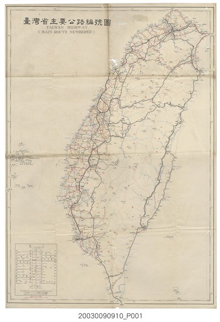 〈臺灣省主要公路編號圖〉,比例尺五十萬分一,1964年6月臺灣省公路局編印。