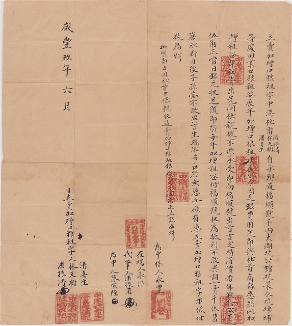 咸豐9年中港社番潘振清等立賣加增口粮租字