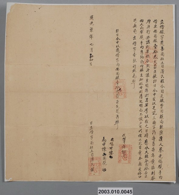 2003.010.0045 道光7年遷善南社蒲氏權立借銀字