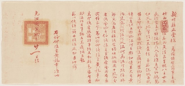 光緒8年新竹縣正堂給隘首黃龍章諭示