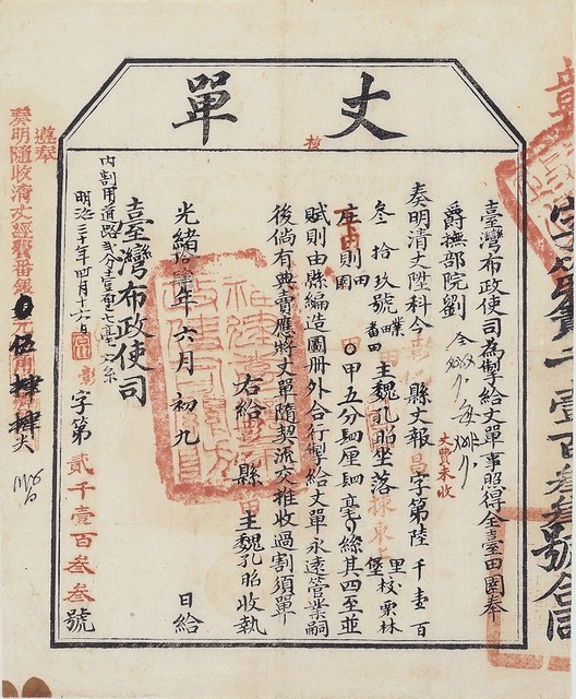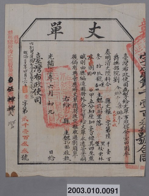 2003.010.0091 光緒14年臺灣布政使司給魏孔昭丈單