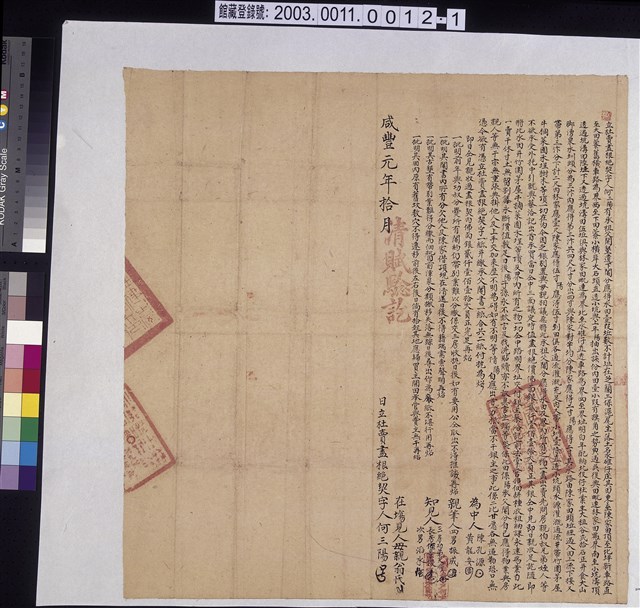 2003.011.0012.0002 咸豐元年何三陽立杜賣盡根田契契尾