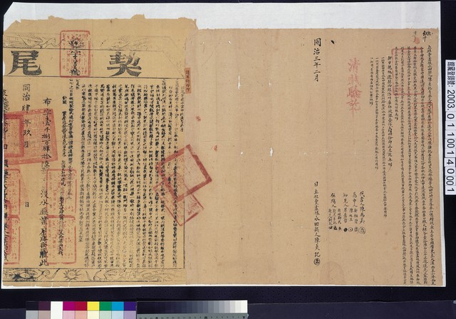 2003.011.0014 同治3年陳貞記立杜賣盡根水田契字併契尾