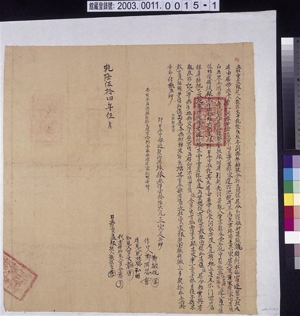 2003.011.0015.0002 乾隆55年淡防廳正堂給業戶李定老與林海生契尾