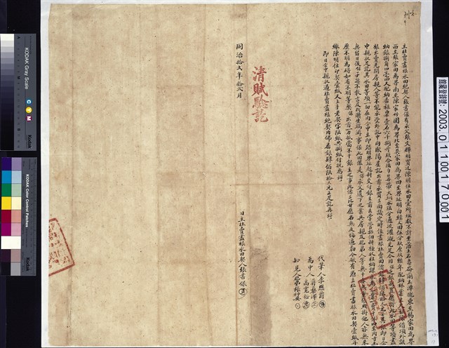2003.011.0017.0002 同治13年淡水廳正堂給業戶歐陽星記契尾
