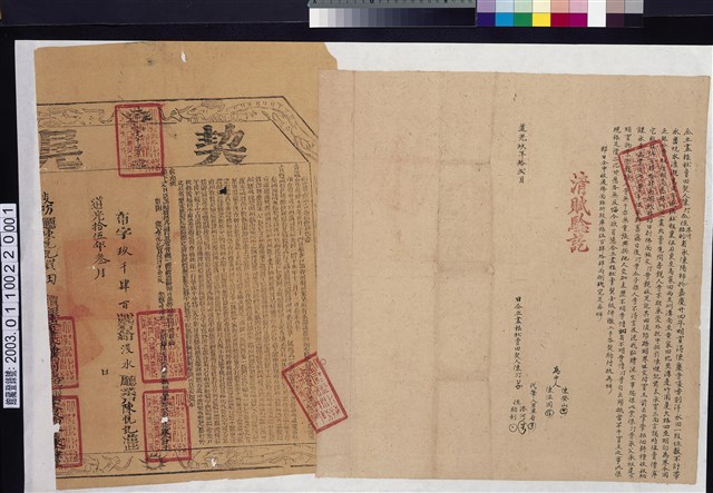 2003.011.0022 道光9年陳汀等仝立盡根杜賣田契字併契尾