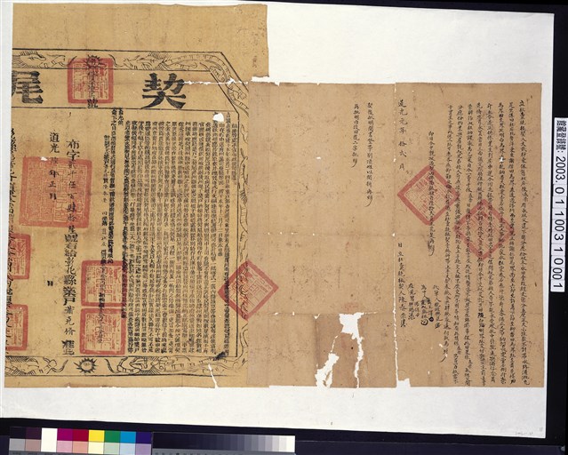 2003.011.0031 道光元年大武郡東保舊社庄陳泰榮立杜賣絕根契字併契尾