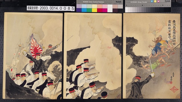 2003.014.0085 臺灣島基隆近衛師團奮戰敵軍擊破圖3幅1組