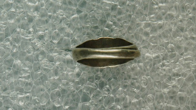 本文物為心型金屬戒指,心型的左邊為花朵裝飾,右邊則為綠葉雕刻。臺灣原住民及漢人皆會帶配飾,而就漢人而言女性使用飾品的比率比男性高。傳統社會中女性配戴的首飾,代表家族的財富及地位,尤其在嫁娶之時,以金銀飾品作為聘禮也十分常見。在臺灣貧者在嫁娶至少要有銀簪,而富者並無限制。因此,飾品不但反映當時社會的審美觀,也是女性及其背後家族之社會地位之象徵。