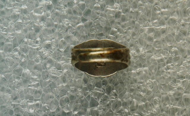 本文物為桃型金屬戒指,以線條勾勒出桃子本體,及其附加的綠葉。桃子在中國有討喜,長壽之意。臺灣原住民及漢人皆會帶配飾,而就漢人而言女性使用飾品的比率比男性高。傳統社會中女性配戴的首飾,代表家族的財富及地位,尤其在嫁娶之時,以金銀飾品作為聘禮也十分常見。在臺灣貧者在嫁娶至少要有銀簪,而富者並無限制。因此,飾品不但反映當時社會的審美觀,也是女性及其背後家族之社會地位之象徵。