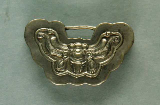 本文物為蝙蝠平安鎖,應為鎖頭的部分,其為一隻展翅的蝙蝠。蝙蝠在中國社會中有福氣的寓意。長命鎖為漢人給小孩配戴的飾品,主要功能為趨吉避兇。中國古代由於醫學不如現代進步,因此希望藉由長命鎖將兒童的命鎖住。上面多為五子登科、狀元及第等吉祥圖樣,也反映家庭對於嬰孩未來的期許。長命鎖材質好壞與裝飾花樣之繁複程度,皆可反映家族在社會中的地位和財富。