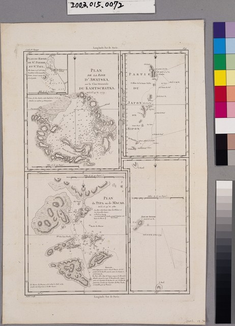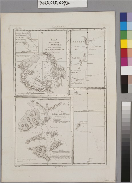 2003.015.0072 Rigobert Bonne〈堪察加東海岸〉與〈澳門〉與〈日本局部地區〉與〈硫磺島〉等海圖4幅