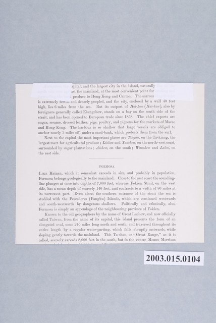 2003.015.0104 C. Perron〈福爾摩沙與福建海峽圖〉