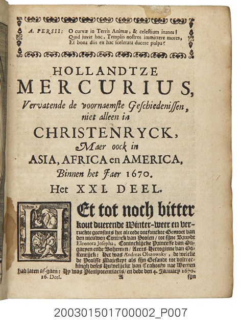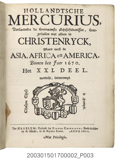 2003.015.0170.0002 彼德卡斯特連著《荷蘭人報》1670年