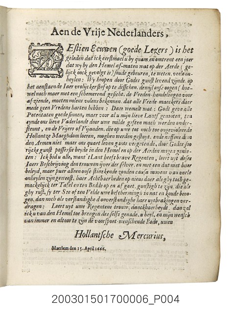 2003.015.0170.0006 彼德卡斯特連著《荷蘭人報》1665年