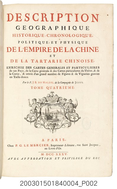 Description géographique, historique, chronologique, politique, et physique de l'empire de la Chine et de la Tartarie chinoise, Vol. 4,bnf gallica,https://gallica.bnf.fr/services/engine/search/sru?operation=searchRetrieve&version=1.2&collapsing=disabled&query=dc.relation%20all%20%22cb33990663r%22 (瀏覽日期:2018/09/27)。