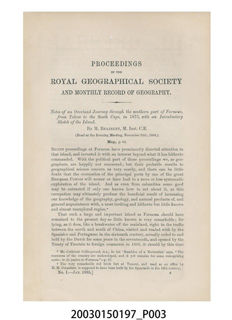 2003.015.0197 麥克比茲利著《福爾摩沙南部陸上旅行記》