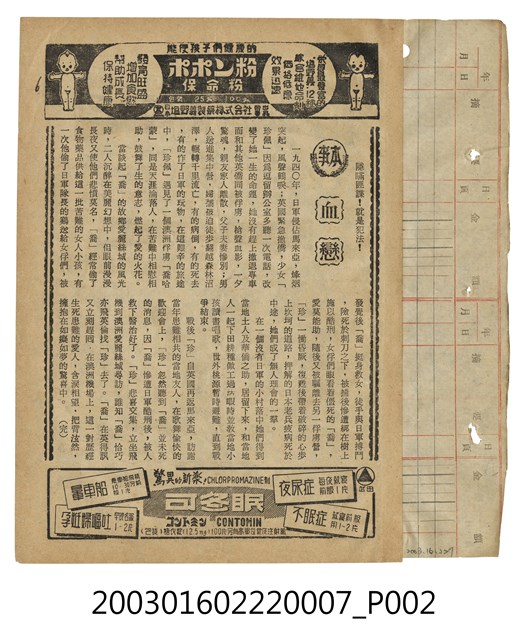 萬國戲院發行《黃金之路》電影本事,為該戲院本事第338期,出自「竜沙影集」電影剪貼簿。