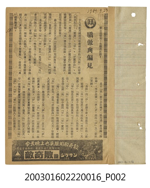 大世界戲院發行《毛毛喋血記》電影本事,出自「竜沙影集」電影本事剪貼簿。