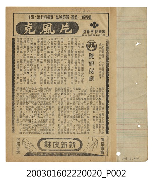 臺北大戲院發行《德國二等兵》電影本事,為該戲院本事第4期,出自「竜沙影集」電影剪貼簿。
