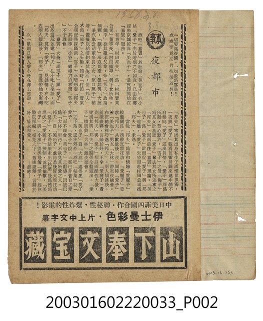 國泰戲院發行《風雲男兒》電影本事,出自「竜沙影集」電影剪貼簿。