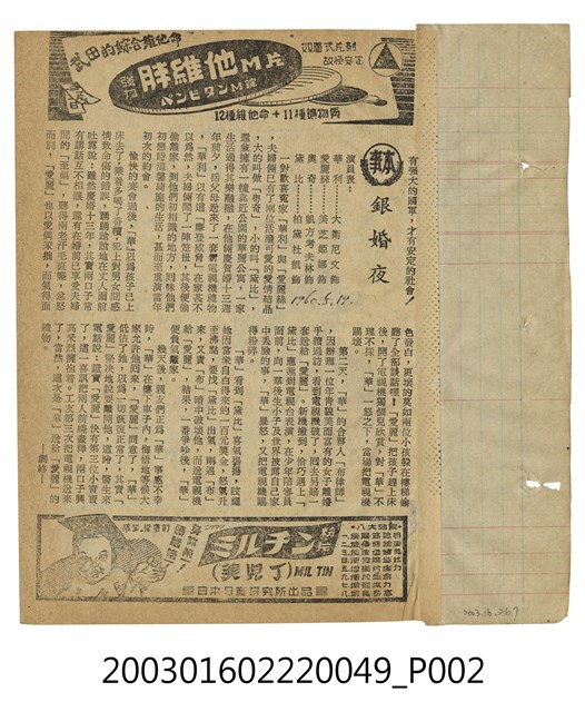 新生戲院發行《野狼》電影本事,出自「竜沙影集」電影本事剪貼簿。