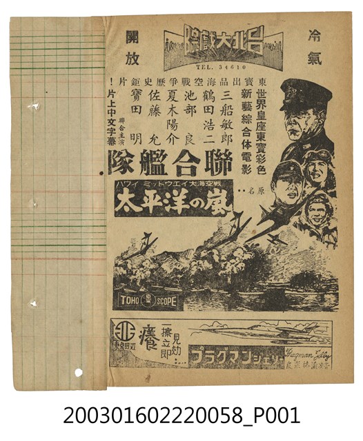 臺北大戲院發行《聯合艦隊》電影本事,出自「竜沙影集」電影本事剪貼簿。
