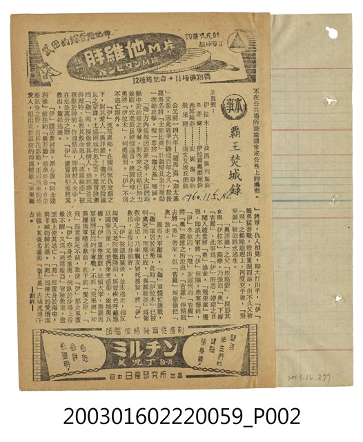 新生戲院發行《海虎突擊戰》電影本事,出自「竜沙影集」電影本事剪貼簿。