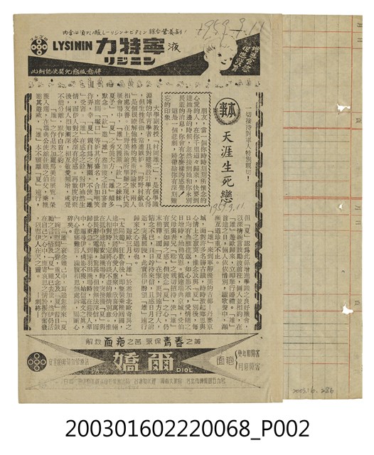 臺北大戲院發行《禁海黑珍珠》電影本事,為該戲院本事第32期,出自「竜沙影集」電影本事剪貼簿。