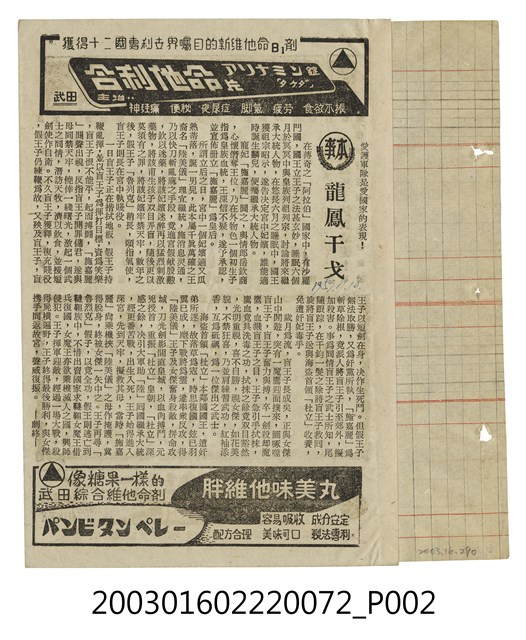 新世界戲院發行《青城十九俠》電影本事,出自「竜沙影集」電影本事剪貼簿。