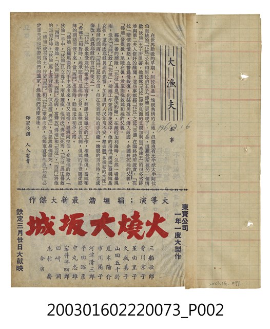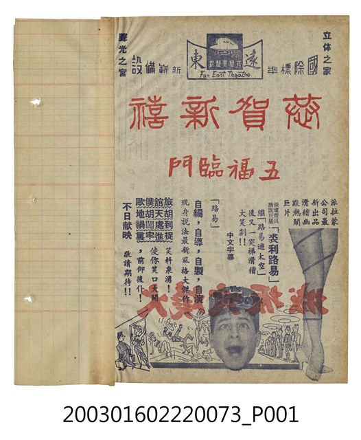 遠東戲院發行《五福臨門》電影本事,出自「竜沙影集」電影本事剪貼簿。