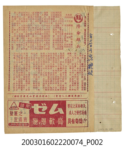 愛國大戲院發行《戰地美人魂》等電影本事,出自「竜沙影集」電影本事剪貼簿。