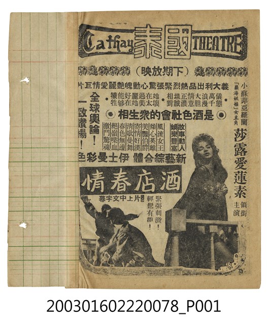 國泰戲院發行《酒店春情》電影本事,出自「竜沙影集」電影本事剪貼簿。