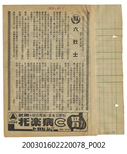 本件與館藏號2003.016.0222.0093為相同影片、不同期別印製。