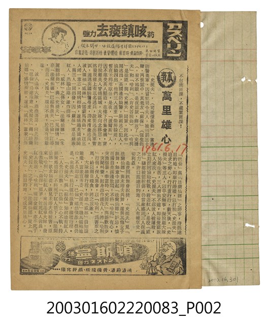 萬國戲院發行《戰艦春光》電影本事,為該戲院本事第567期,出自「竜沙影集」電影本事剪貼簿。