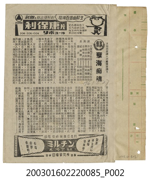 新生戲院發行《風塵血淚》電影本事,出自「竜沙影集」電影本事剪貼簿。