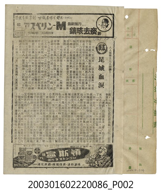 萬國戲院發行《凱旋天堂村》電影本事,為該戲院本事第582期,出自「竜沙影集」電影本事剪貼簿。