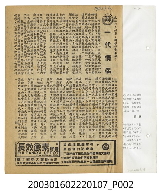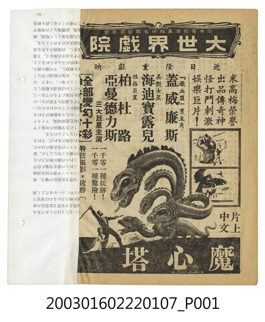 大世界戲院發行《魔心塔》電影本事,出自「竜沙影集」電影本事剪貼簿。