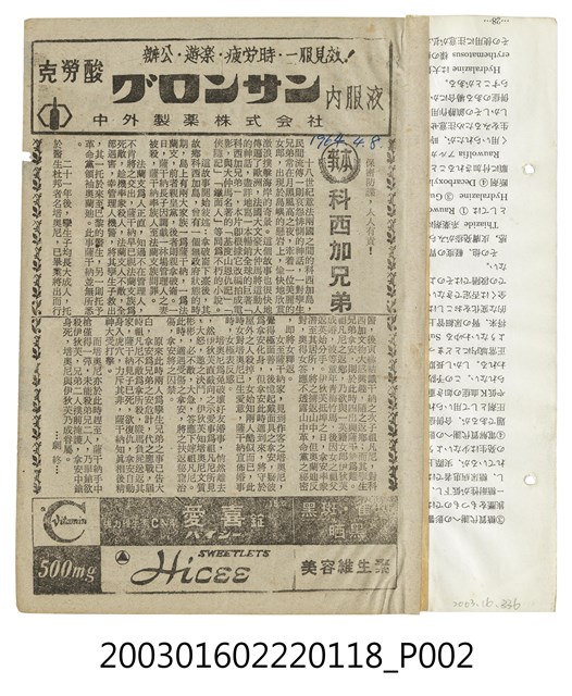 本件為臺北萬國戲院1964年提供觀眾的第697期電影本事,單色印刷,出自「竜沙影集」電影本事剪貼簿。