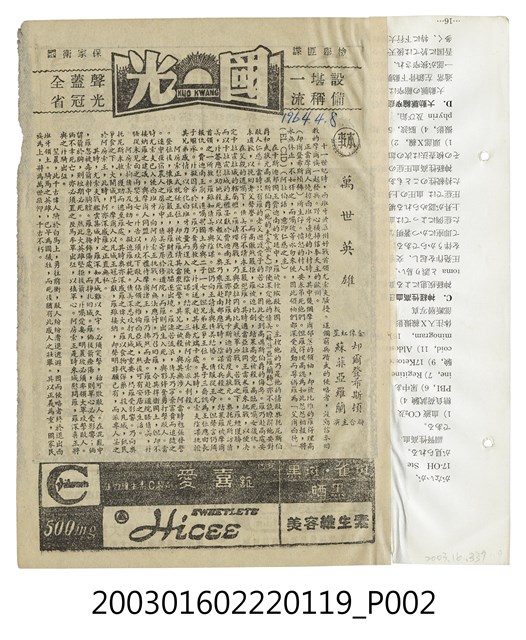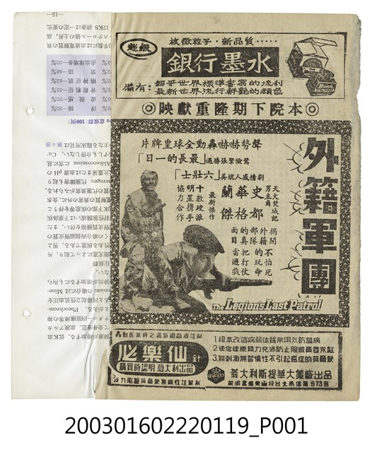 該面上有藥品廣告、「本院下期隆重獻映」,以及德語片《外籍軍團》(Marcia o crepa/ The Legion's Last Patrol)的電影劇照及文案廣告,強調本片是「驚險緊張勝過『最長的一日』」、「劇情感人媲美『六壯士』」,並由比利時、西班牙、義大利、西德等電影公司共同攝製,法蘭克魏斯伯(Frank Wisbar)執導,史都華格蘭傑(Stewart Granger)等主演的戰爭片,描述一群法國外籍部隊將打仗視為遊戲的故事。