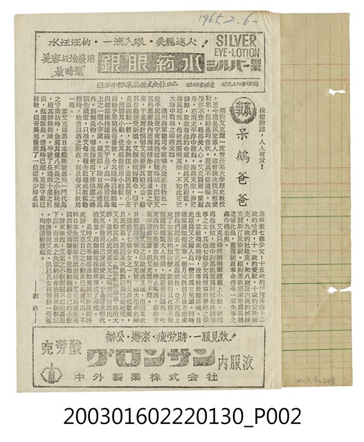 本件為臺北萬國戲院1965年提供觀眾的第731期電影本事,單色印刷,出自「竜沙影集」電影本事剪貼簿。