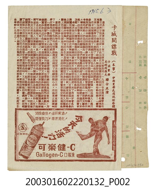本件為臺北豪華戲院1960年代提供觀眾的電影本事,單色印刷,出自「竜沙影集」電影本事剪貼簿。